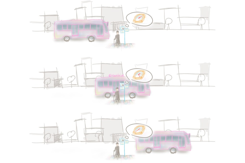 请大家看一个司空见惯的情景:一辆巴士路过站台,随着时间的流逝,巴士的位置不断改变。(等车人:喂!师傅停车啊!)